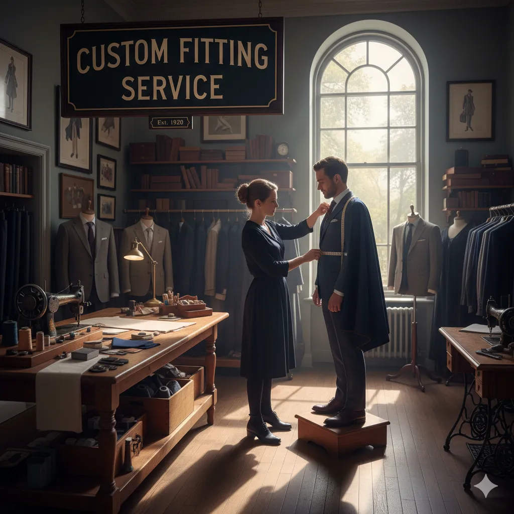 Personalized fitting consultations with detailed measurements. Includes multiple fitting sessions to ensure perfect garment adaptation.